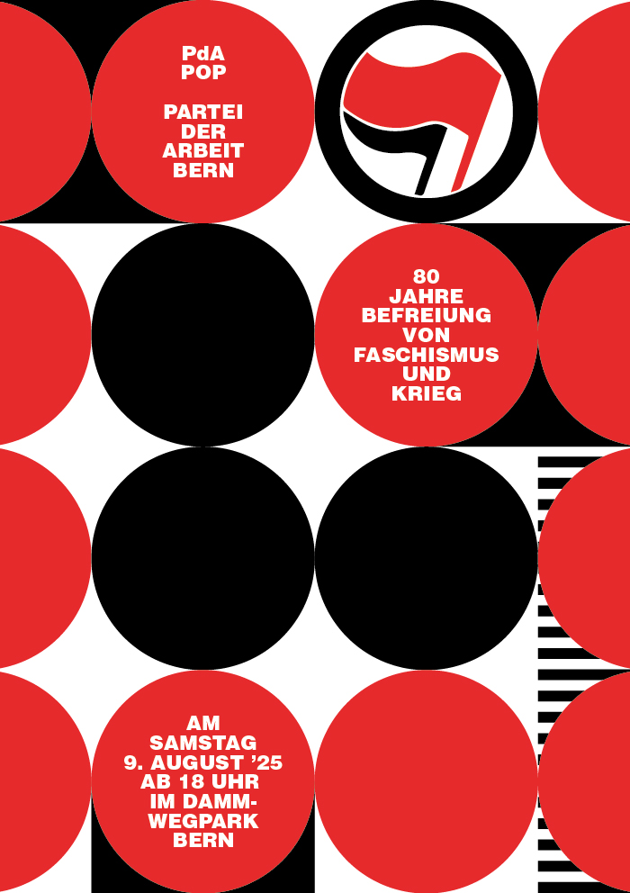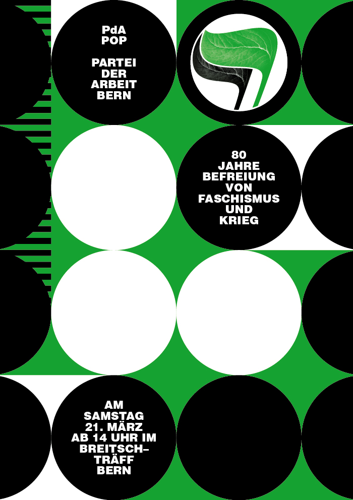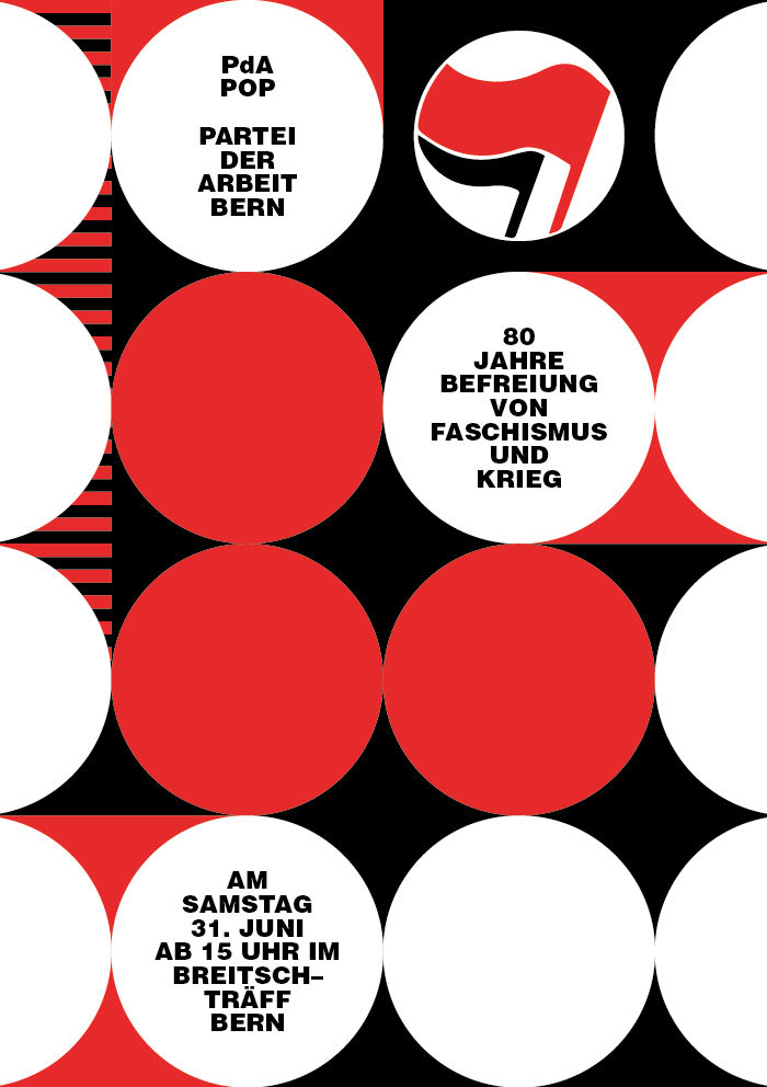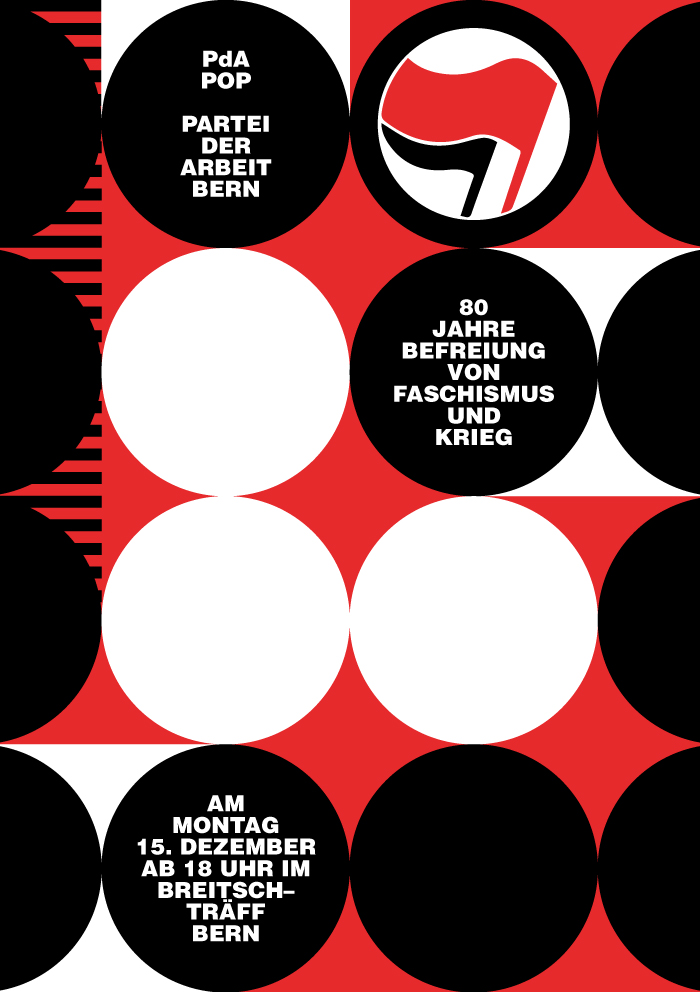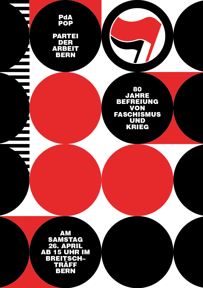 flyers for a series of events by the labor party of berne / 80 years since liberation from fascism and war